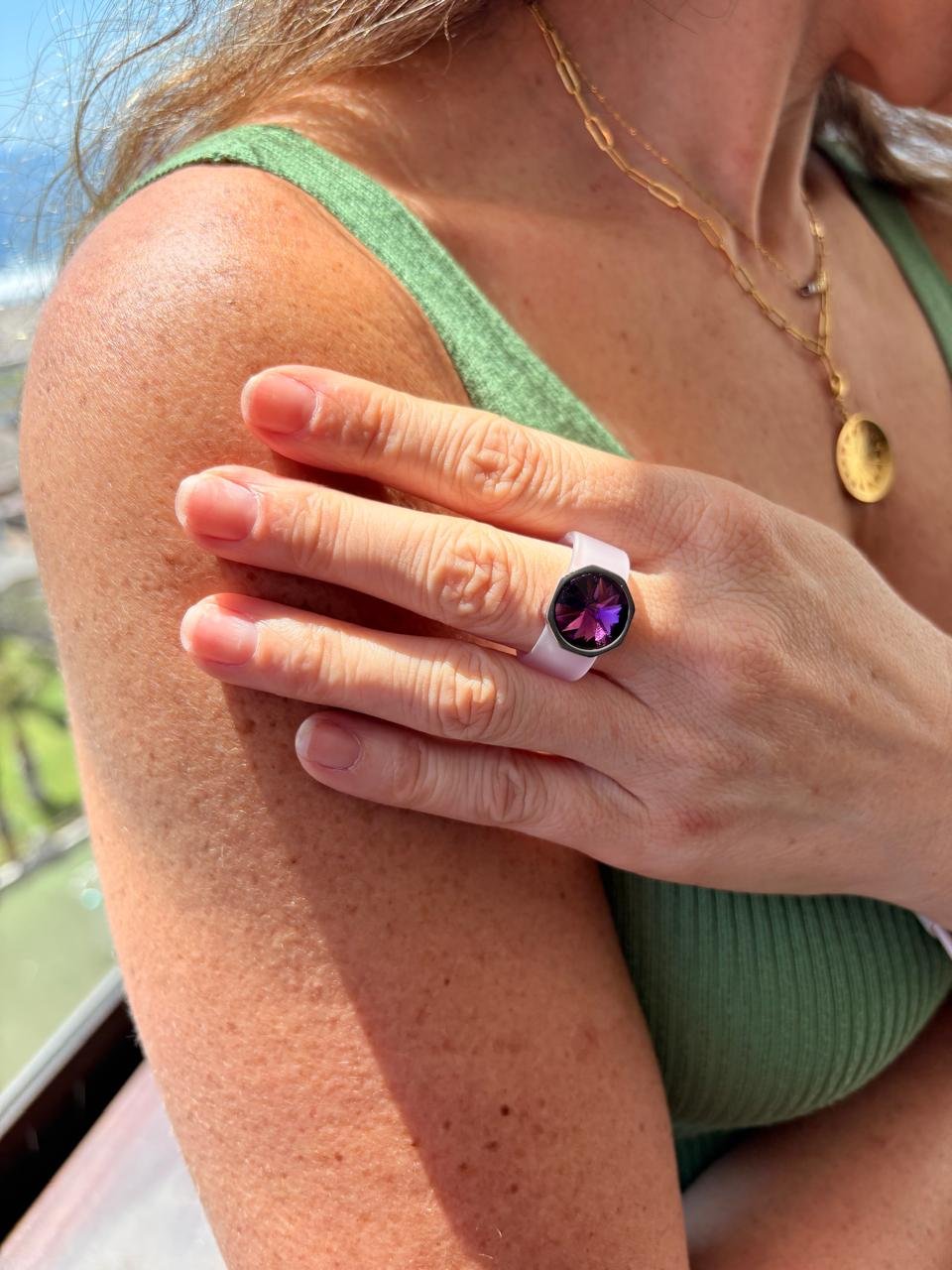 Este anillo incorpora un cristal austriaco de alta calidad, cuidadosamente engastado para entregar un brillo sutil que realza cualquier look sin perder naturalidad. Además, su material de caucho flexible garantiza una experiencia cómoda, ideal para jornadas largas o para quienes prefieren joyas prácticas sin renunciar a la elegancia.