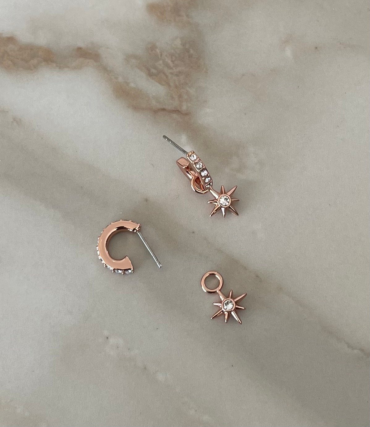Argollas con Cristal Austriaco y Charm Estrella de Brújula en Oro Rosa