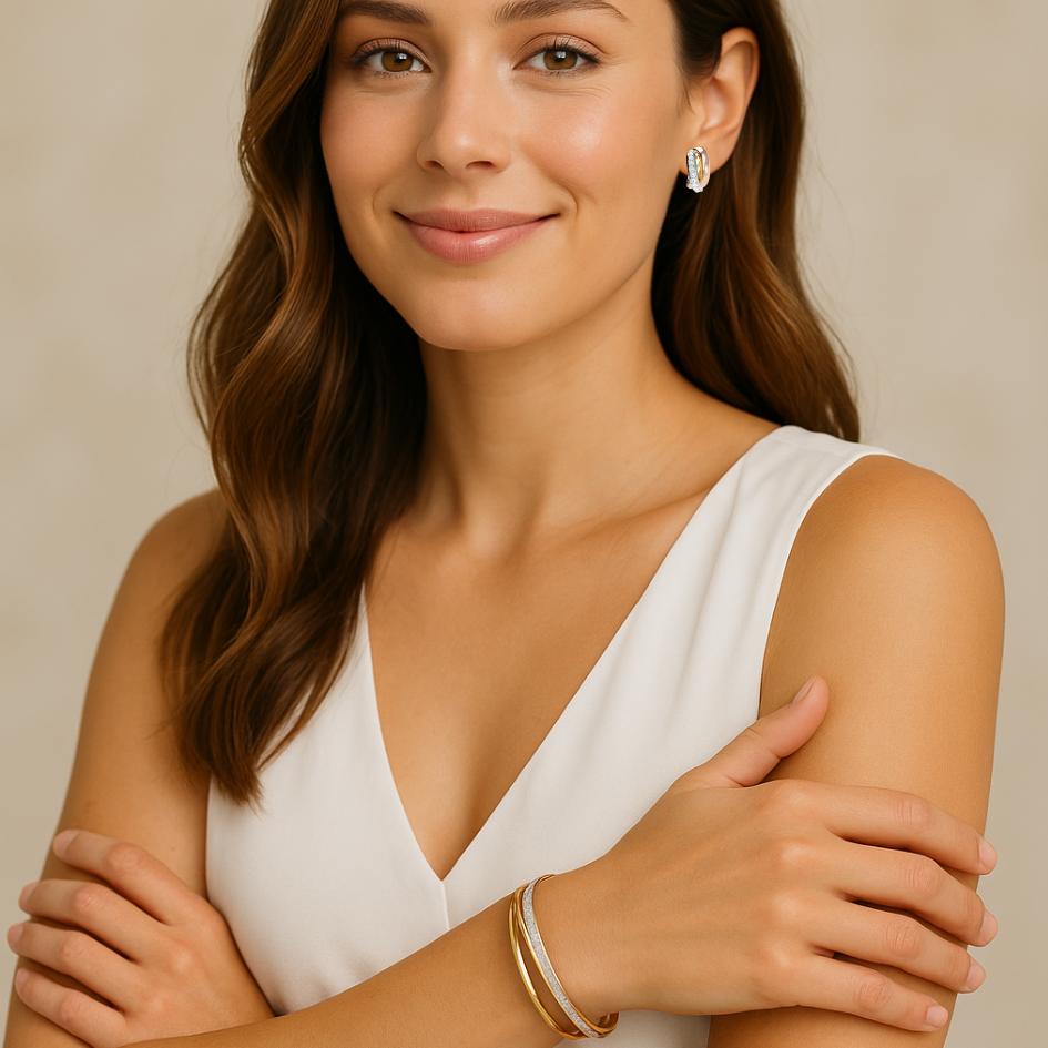 Las argollas trinity brilliance oro triple son una joya sofisticada que combina tres tonos de metal en un solo diseño armonioso. Pensadas para mujeres que buscan elegancia con personalidad, estas argollas logran un equilibrio perfecto entre lo clásico, lo moderno y lo femenino.