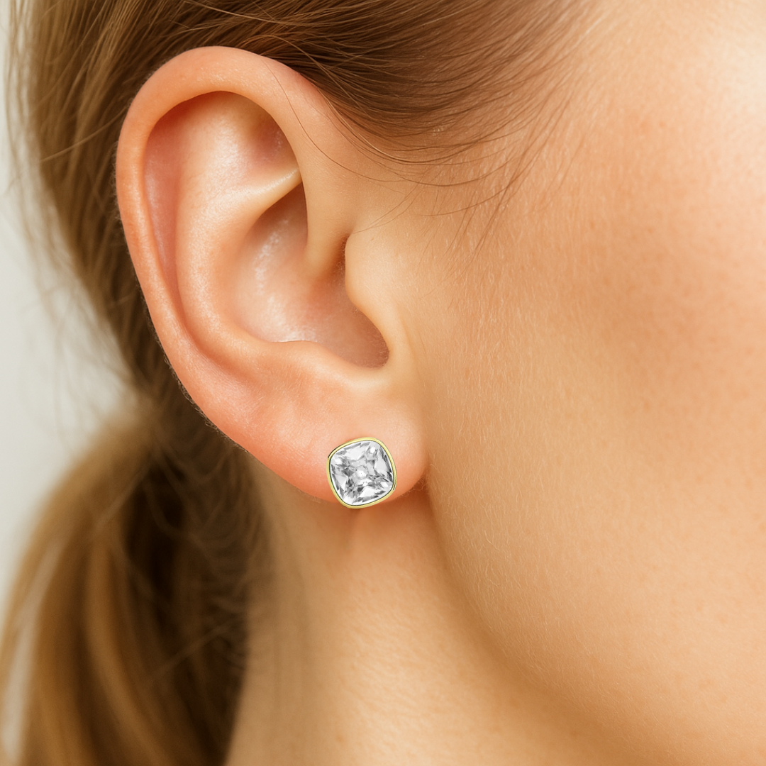 Los aros cushion 12 mm con cristales transparentes son una joya pensada para mujeres que valoran la exclusividad, el diseño femenino y una estética sofisticada que se adapta con naturalidad a distintos momentos del día. Su tamaño equilibrado y su brillo delicado los convierten en un básico elegante dentro de cualquier joyero.