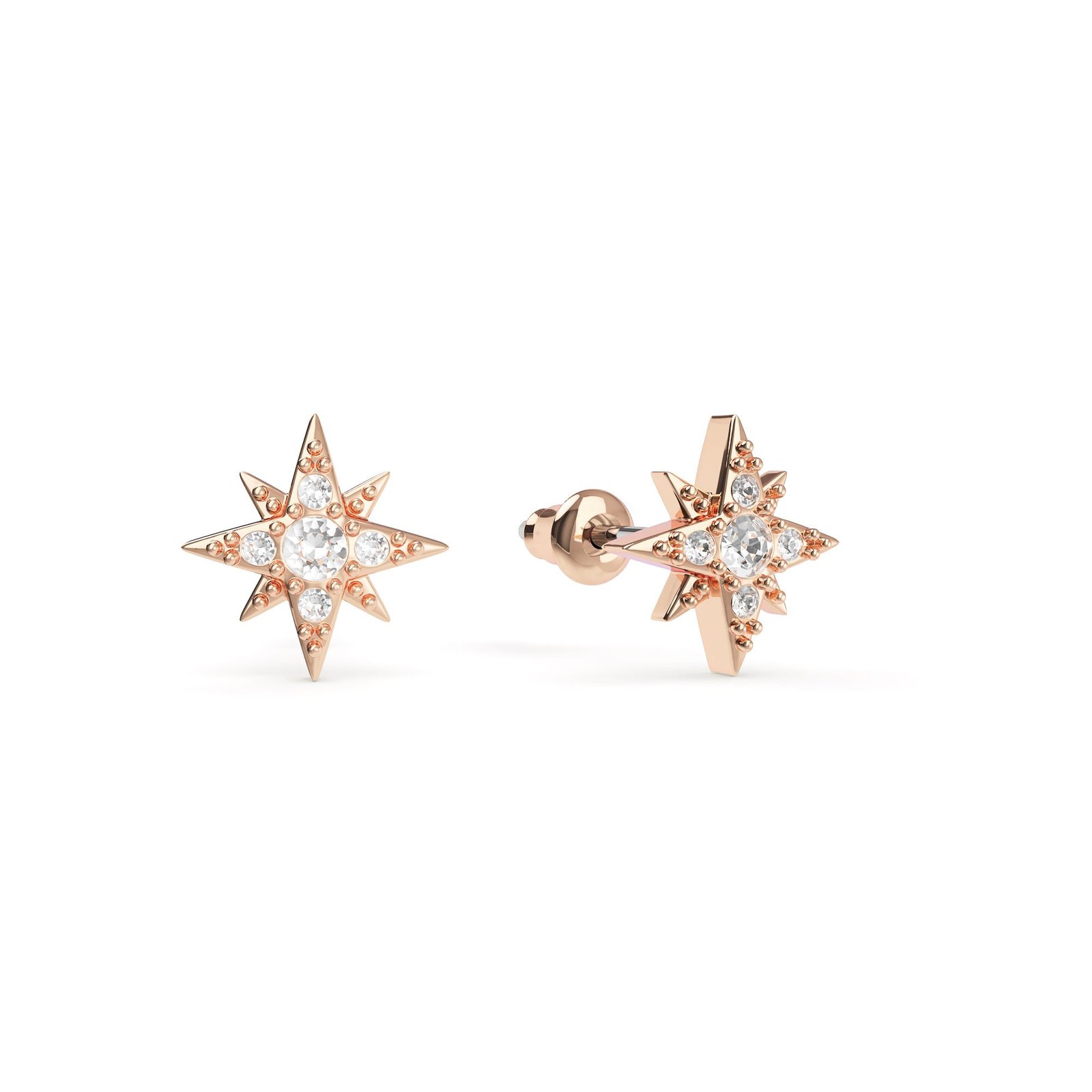 Aros Mini Estrella de 8 Puntas con Cristal Transparente en Rodio