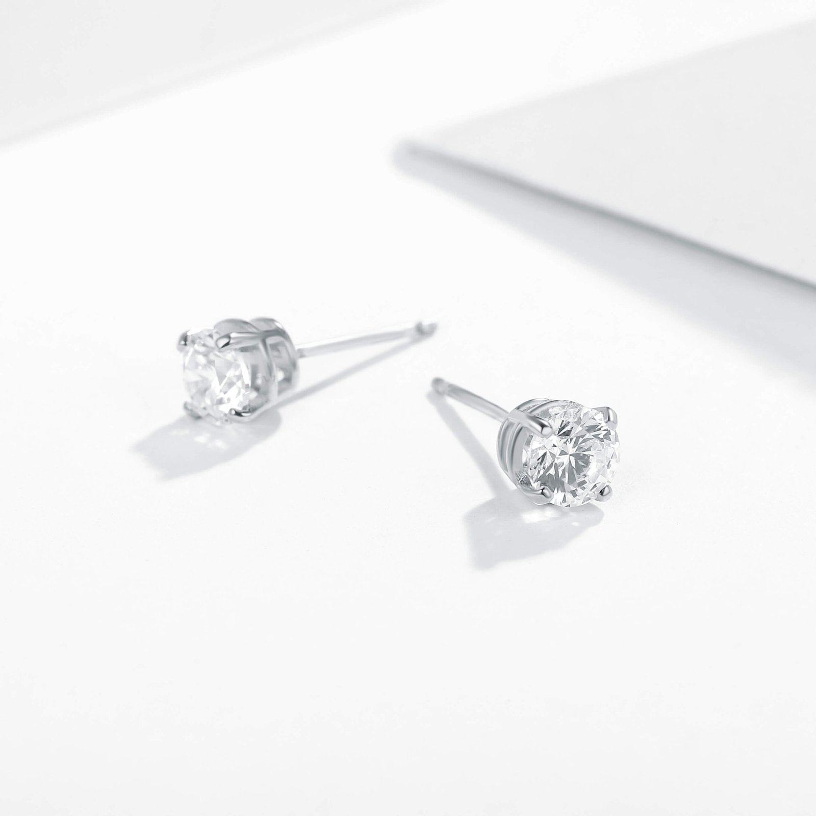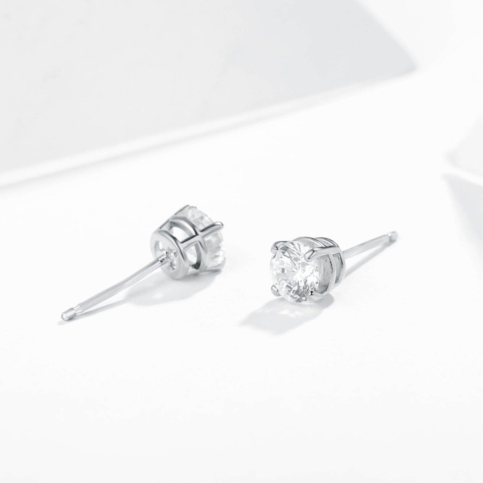 Aros solitario de 4 mm con cristal de Austria y baño en rodio. Clásicos, hipoalergénicos y perfectos para uso diario.