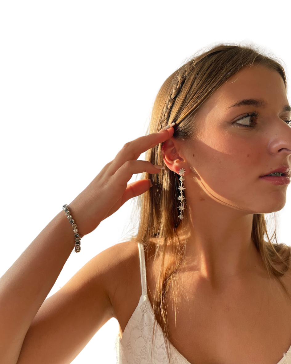 El charm largo estrella con cristales de Austria Polaris Star es una pieza inspirada en el cosmos, diseñada para aportar exclusividad, un estilo femenino y un brillo sofisticado a tus argollas Bloom. Su silueta alargada y elegante convierte cualquier look en una declaración de estilo, ideal para quienes aman personalizar sus joyas con carácter y distinción.