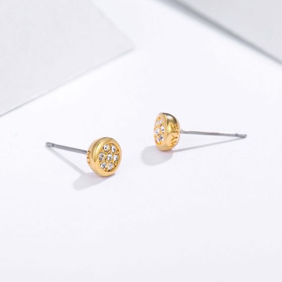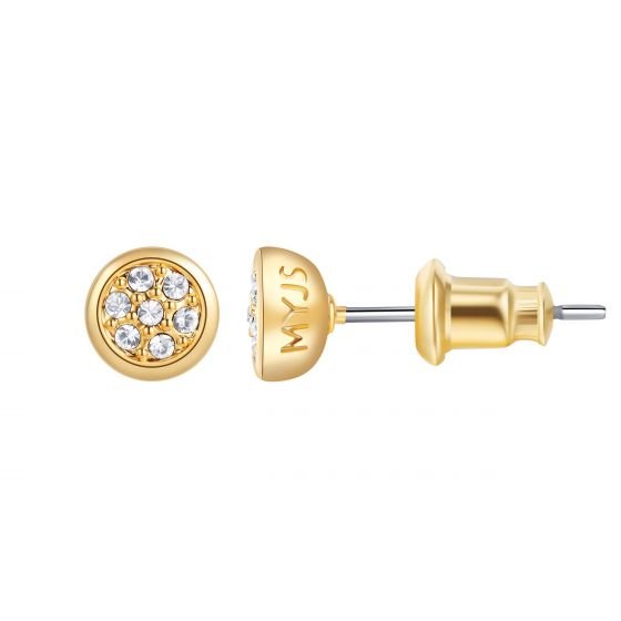 Pendiente Pendiente botón Bloom con cristal de Austria en oro. Pequeño, brillante y perfecto para uso diario.