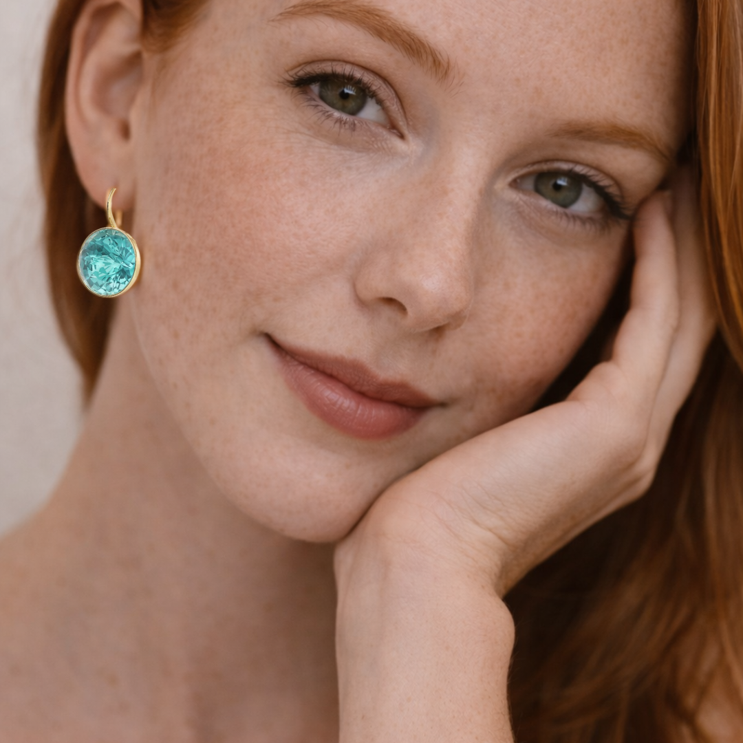 Los Pendientes Bella de 10 quilates con cristales turquesa claro en oro son una joya diseñada para mujeres que buscan exclusividad, feminidad y sofisticación en cada detalle. Su cristal de gran tamaño aporta presencia y brillo, mientras su tono turquesa claro ilumina el rostro con un efecto fresco y elegante.