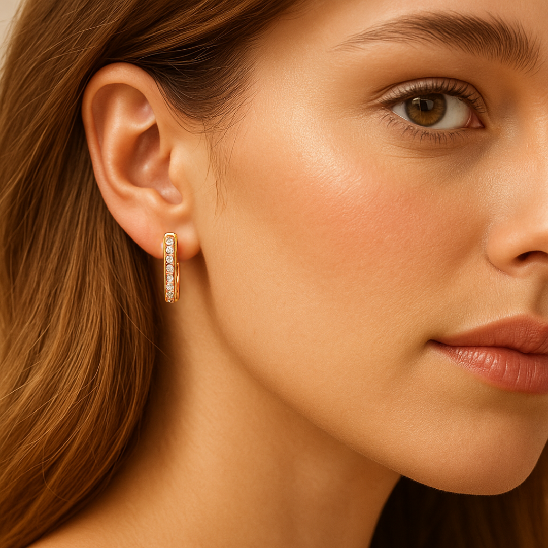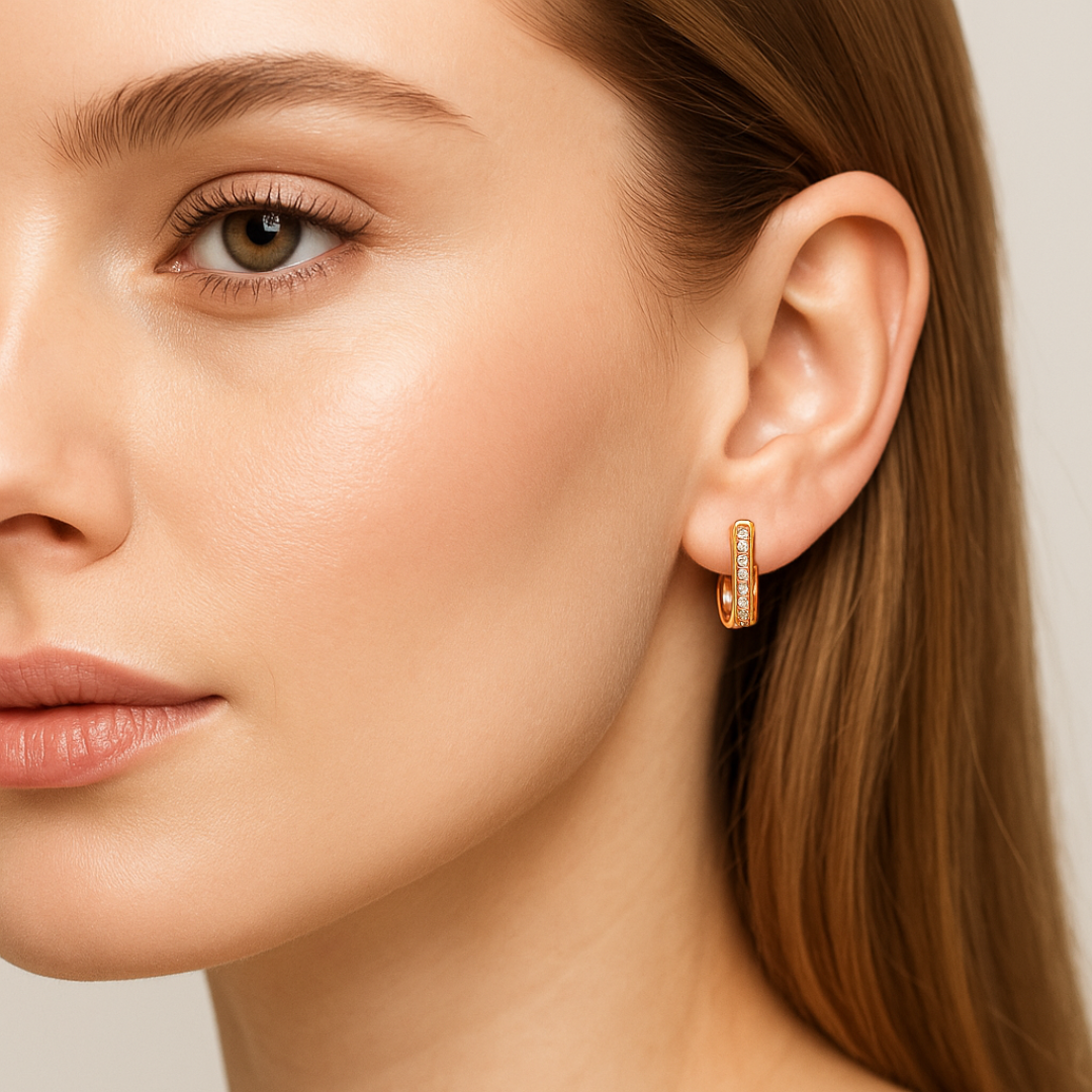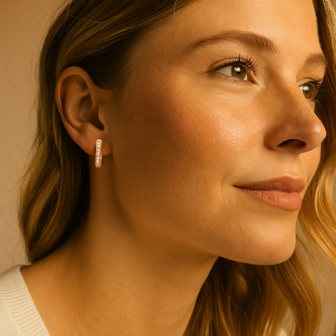 Con un tamaño delicado de 12 mm de alto y 2,5 mm de ancho, son cómodos y elegantes, ideales para el uso diario o eventos especiales. Están elaborados con materiales de alta calidad, 100 % hipoalergénicos y libres de níquel, pensados para pieles sensibles. Se entregan en una lujosa bolsa de terciopelo, perfectos como regalo o para consentirte.