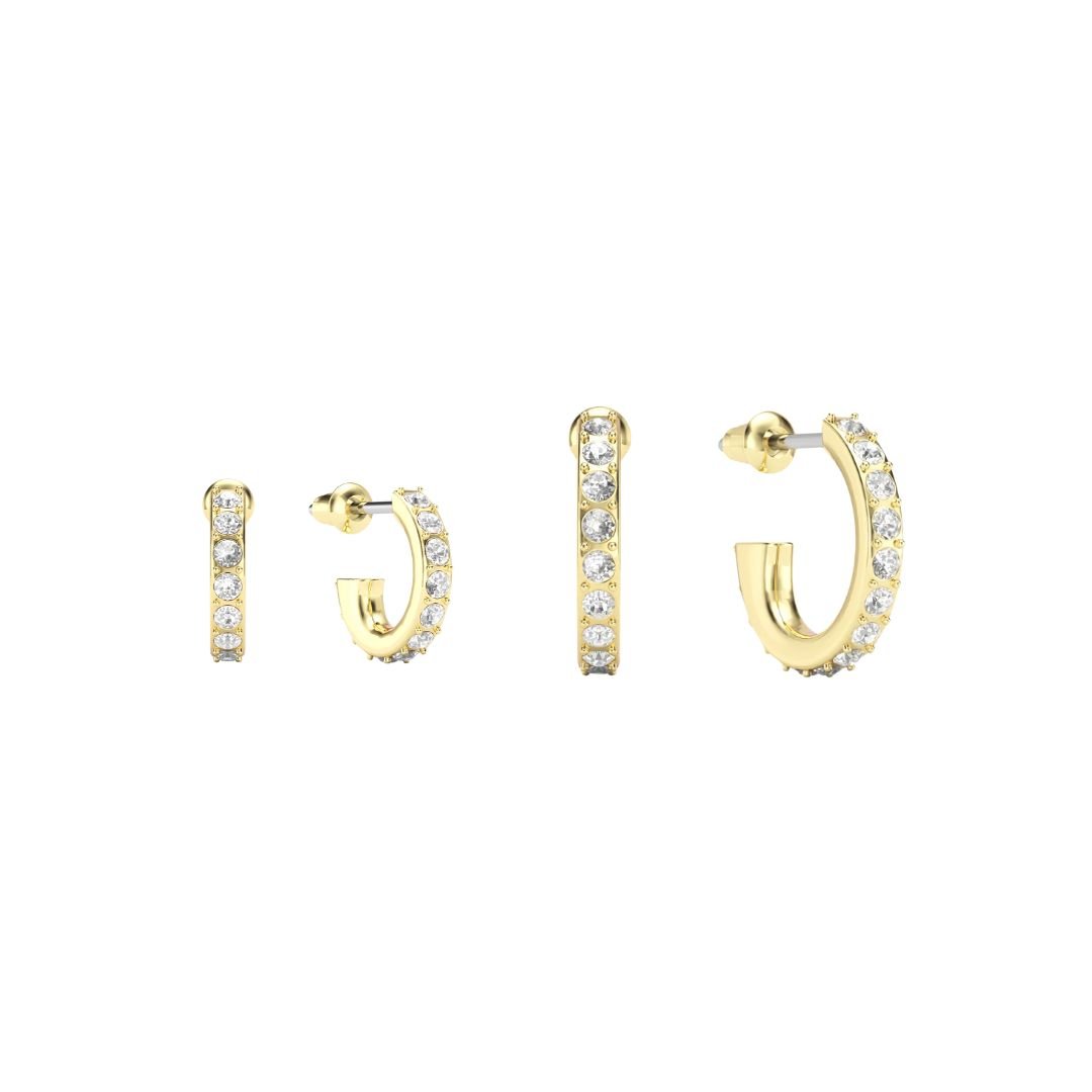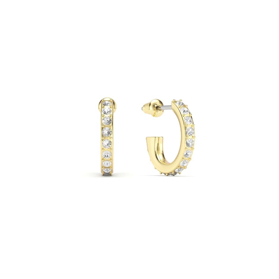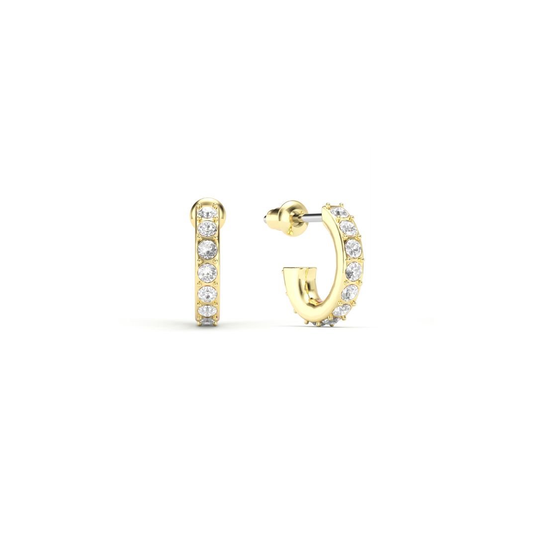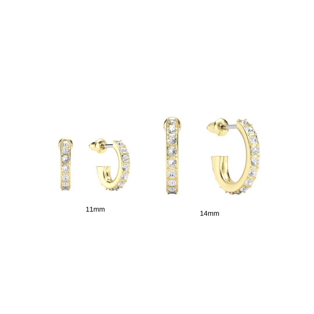 Cada argolla está decorada con cristales de Austria genuinos, cuidadosamente engastados en un delicado diseño pavé que refleja la luz desde todos los ángulos. El baño de oro aporta un acabado cálido y luminoso que realza cualquier outfit, desde looks casuales hasta estilismos más elegantes.